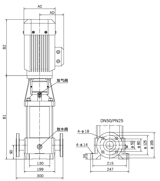 進出口口徑: DN25 DN32 DN40 DN50 DN50 DN50 DN65 DN80 DN100 DN100 DN125 DN125 DN150